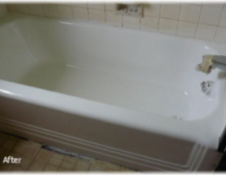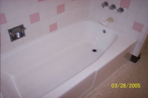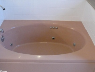 Refinishing is an economical way to beautify your bathroom. When new, your bathtub surface is nice and shiny. As time goes on however, your tub's surface can dull, get damaged by acidic or abrasive cleansers or look outdated. The original homeowner's color choice may not go with your neutral decorating theme. Thetub can be nicked or scratched. Replacing a bathtub is time consuming, expensive and messy. It is now the time for a bathtub resurfacing. This will save up to 80% of the cost of tub replacement.We can do the job in one day, without removing the tub. If there are any repairs to be made, they are done first. Then we use a tried and perfected method to thoroughly clean and prepare the surface before the tub reglazing. After the new coat is applied, in 24 hours your tubis ready to use. It will have the same luster as a new tub, and will be easy to keep looking clean and beautiful.